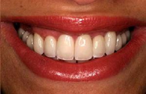 This woman was not happy with her rotated four front teeth when she smiled. Using state-of-the-art All-Porcelain Empress Veneers, her smile was dramatically enhanced. Her new smile shows just how beautiful and natural the veneers look and how her smile was improved using Porcelain Veneers.